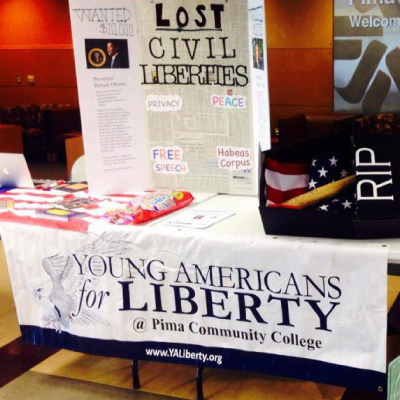 pcc“The NSA is Spying On You!” The Young Americans for Liberty Pima Community College chapter is handing out fliers with this heading. Their reason is two fold: first, to get the attention of college students filled with apathy and second, so students can learn more about the NSA at their virtual conference with an information specialist.