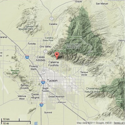 Sometimes mines just vanish. Such seems to be the case with the Pontatoc mine located near the north end of Pontatoc Road in Tucson just below the Santa Catalina Mountains. The map below shows the general location (at the balloon). I will show a more detailed location farther down the post.