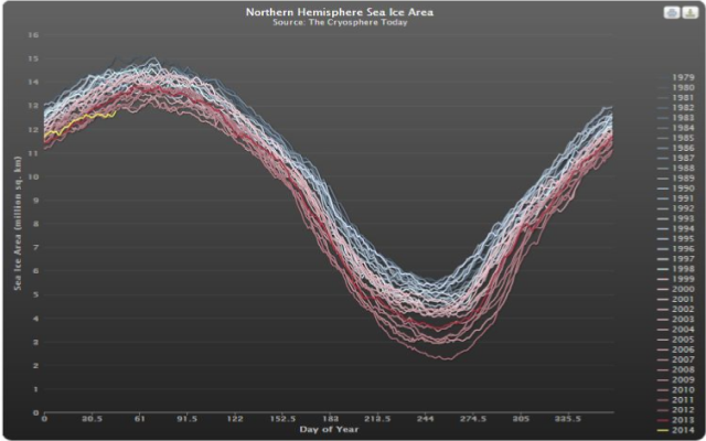 An Associated Press article by AP’s chief climate alarmist, Seth Borenstein, was printed above the fold on the front page of the Arizona Daily Star, February 18, 2014, but deeply buried in the online version of the Star here. The article refers to a new paper: “Observational determination of albedo decrease caused by vanishing Arctic sea ice,” by Kristina Pistone, Ian Eisenman, and Veerabhadran Ramanathan. PNAS, www.pnas.org/cgi/doi/10.1073/pnas.1318201111.