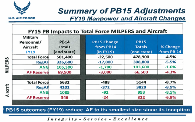 If the cuts are allowed, the Air Force will be as small as it has been since its inception.