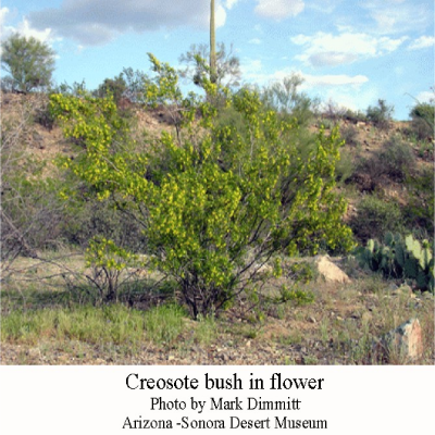 Dimmitt also notes that the creosote bush “is the single most widely-used and frequently-employed medicinal herb in the Sonoran Desert. One of its medicinal names is chaparral tea, though it does not grow in Chaparral. The Food and Drug Administration has considered banning its sale based on a couple of deaths attributed to drinking it. But innumerable native peoples and some knowledgeable ethnobotanists drink large quantities of it for a wide variety of ailments with no detectable ill effect (other than gagging from its awful taste). Its antioxidant properties were used in foods and paints through the 1950s and are now being evaluated as anti-cancer agents.”