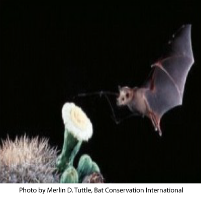 Bats are important pollinators for a variety of plants including the saguaro and other cacti. The fruit eaters help disperse the seeds.