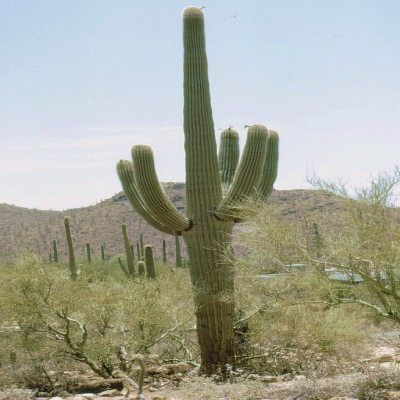 When looking across an expanse of desert containing many saguaros, one notices that there is not a continuous range of saguaro heights. Rather, there seems to be just a few “cohorts” of saguaro of similar heights. This happens because the seeds need several consecutive days with moist soil to germinate and these conditions do not occur every year.