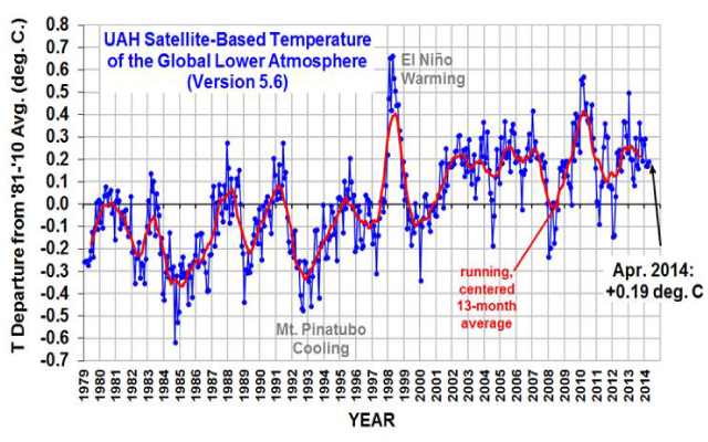 For the globe as a whole the UAH satellite temperatures show that there was no trend from 1979 to 1998, then a super El Nino phase shift stepped up the temperature, but there has no trend since 1999 even though we have continued to pump carbon dioxide into the atmosphere.