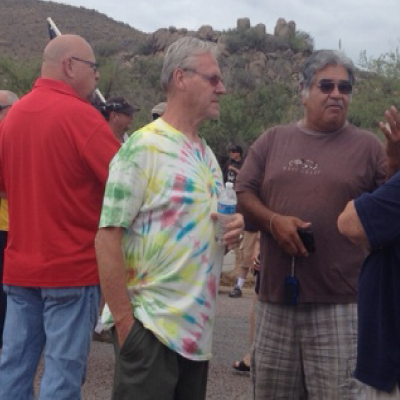 Pinal County Sheriff Paul Babeu showed up on site briefly, asked protestors on both sides to show each other respect and keep the protests peaceful. His deputies kept a very low profile throughout the day.