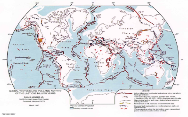 The major plate boundaries are shown on the map below.