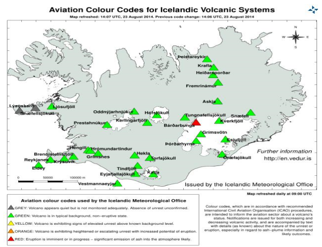 Icelandic volcanoes are in the news again with the threatened eruption of the Bardarbunga volcano located beneath the Vatnajökull glacier. You may remember that in 2010 ash spewing from the Eyjafjallajokull volcano disrupted air traffic throughout Europe.