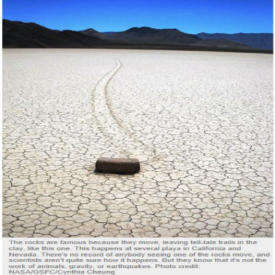 How did these rocks move? That has been the question asked since at least 1940s when investigations began. Most explanations involve wind, water, or ice, but nobody has seen the rocks move – until now.