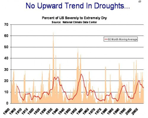Has global warming caused any drought conditions in the western U.S.? Let’s look at the data of drought conditions since 1900: