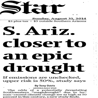 In the Sunday edition of the Arizona Daily Star we were treated with a scare story about megadroughts titled, “S. Ariz. closer to an epic drought .” The sub-headline of the story by Tony Davis (seen only in the print edition) reads, “If emissions are unchecked, upper risk is 50%, study says.” The first line in the Star story refers to “human-caused climate change.” Trouble is, the study, itself, does not mention “emissions” or “human-caused climate change.” Those statements in the Star are pure fabrication. You can read the full study here.