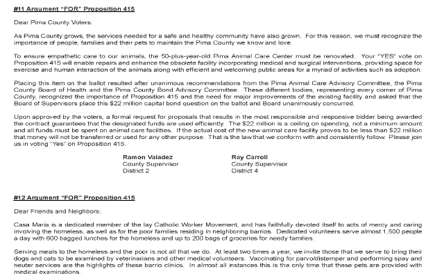 Huckelberry told the Star, “I think it’s obvious we go to great lengths to be neutral, and the staff cannot take a position on a proposition one way or another. All we can do is factually provide information,” he said. “This clearly is something that ought to be reviewed by the county attorney.”