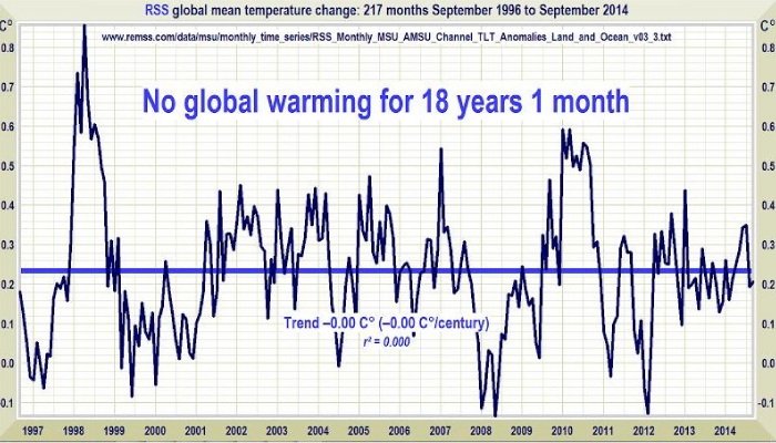 The Earth’s atmosphere has had no net warming for more than 18 years now according to RSS satellite data.