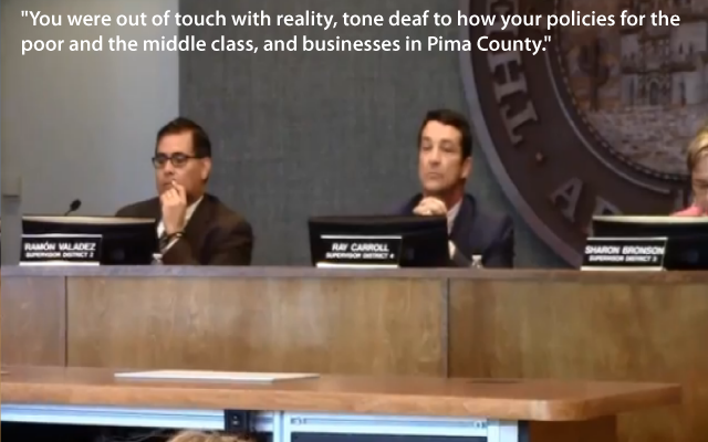 “You were out of touch with reality, tone deaf to how your policies for the poor and the middle class, and businesses in Pima County.”