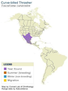 There are three other thrashers in the southwest, but the curve-billed thrasher has the largest range. Cornell notes the other three thrashers: