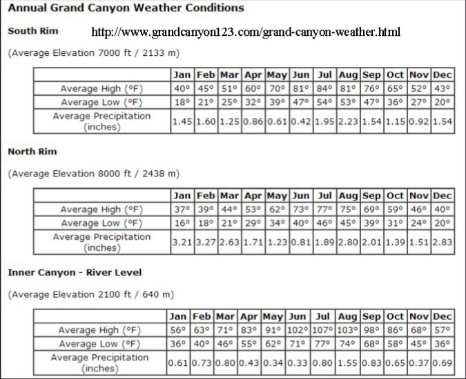 Consider the Grand Canyon. The river level is 4,900 feet below the South Rim and 5,900 feet below the North Rim. Does the extra weight of the atmosphere at the bottom of the Canyon make the bottom warmer than the rim? Even though cold air sinks, the bottom of the Canyon is always warmer than the rim, at any time of the year, as shown by temperature measurements in the table below. Notice also that the higher North Rim is almost always cooler than the South Rim. This is a demonstration of the “lapse rate.” Atmospheric pressure decreases with altitude. This is because as you go higher up there is less air above you, and therefore less downward force due to the weight of this air. As pressure decreases, air expands and cools.