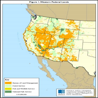 Most federal land is administered by four agencies: the Bureau of Land management, 258.2 million acres; the Forest Service, 193 million acres; the Fish & Wildlife Service, 93 million acres; and the National Park Service, 79 million acres. Other federal land ownership includes military bases and land held in trust for Indian reservations. The map below shows the concentration of federal lands in the west.