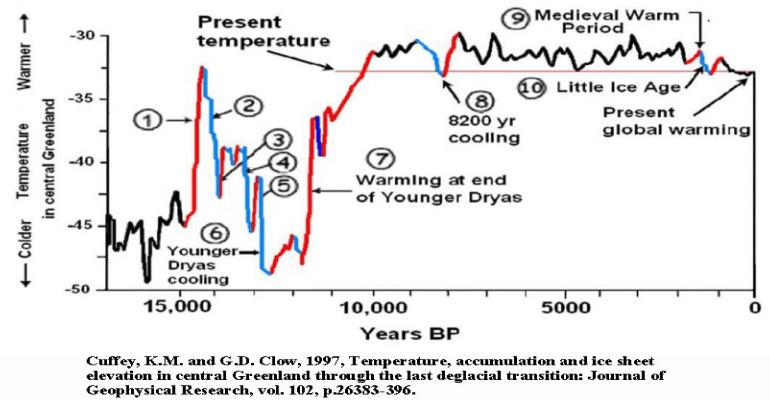 Finally, let’s put things in a longer perspective and look at global temperatures for the past 10,000 years. Given that perspective, it looks like 2014 was about the 8000th warmest year, give or take 1,000 years.