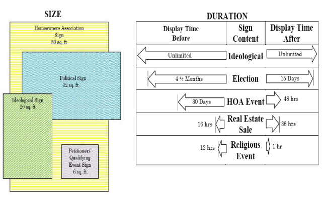 According to ADF, the church rents space in temporary locations for its weekly service. It uses small, temporary signs to invite and direct the community to its services. The Town of Gilbert Sign Code imposes strict limits on the size, location, number, and duration of the church’s signs. It does not impose the same restrictions on political, ideological, and homeowners’ association signs. If the church violates the code, Pastor Reed could be fined and possibly jailed.