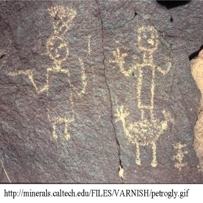 Desert varnish is the reddish-brown to black coating on pebbles, boulders, and cliff faces one sees in arid regions. Some of these surfaces have become the canvas for petroglyphs, rock drawings made by scraping off the desert varnish. Desert varnish is not just a chemical stain; it is an ecosystem teeming with life.