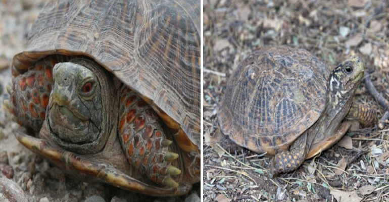 Many people keep box turtles as pets. According to DesertUSA, “…a collected wild one will almost certainly fare poorly in captivity. Within a short time, it may suffer from infections, dehydration and malnutrition, showing symptoms such as gasping, swollen eyes, a white tongue and a runny nose.