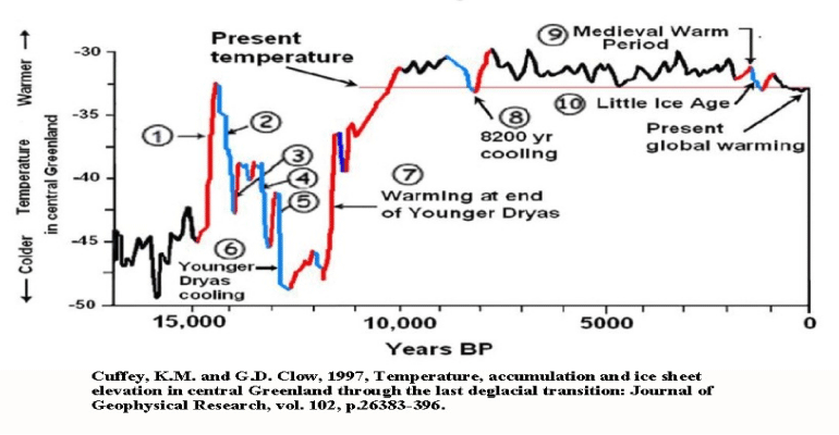 Climate alarmists get all hot and bothered about the prospect that our climate will not remain “normal.” So what is normal? During the past 15,000 years, global temperatures have been as much as 15 degrees C colder and almost 3 degrees C warmer than now.
