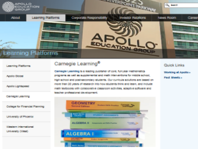 A quick glance reveals that “A for Arizona” is funded in part by the Apollo Education Group of which Carnegie Learning is a subsidiary, Stand for Arizona is funded by the Walton Family and Bill & Melinda Gates Foundations, and Expect More Arizona was also started with funding from the Apollo Education Group.
