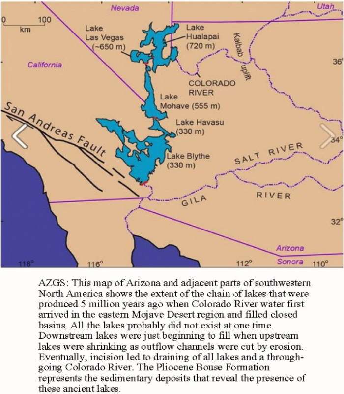 A detailed study of the Bouse Formation along the lower Colorado River supports a young age for the river and canyon. The best documented hypothesis was put forth by Philip Pearthree of the Arizona Geological Survey, Kyle House (now with USGS), and Michael Perkins (Univ. of Utah). Their paper, “Stratigraphic evidence for the role of lake spillover in the inception of the lower Colorado River in southern Nevada and western Arizona,” Geological Society of America Special Paper 439, has been awarded GSA’s prestigious Kirk Bryan Award for Research Excellence for 2013. (The paper is pay-walled at GSA but you can download the full paper here, 26.8 Mb.)