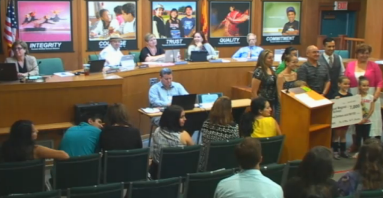 Oversized check presentation to Davis P.E. program