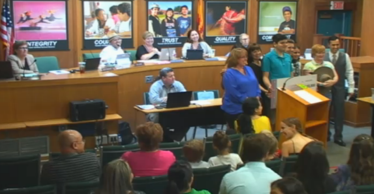 Mr. Brian Sauber called on Sanchez to resign during the Call to the Audience. He stated, “I have talked to many parents and teachers. You will lose more students and teachers next year. So go ahead and give bonuses. A recall is coming. The recall that everyone wants. I have never seen morale in this District so low, so save the taxpayers money and resign now. The way you handled the Audit Committee was disgusting,” said Sauber referring to the decision to remove watchdog members from the Committee, “the District has no oversight now. Ms. Grijalva should not be handling financial decisions when she is currently breaking campaign finance laws,” stated Sauber referring to Grijalva’s failure to file campaign finance reports. Sauber concluded, “The way the Open Meeting laws are being broken shows bad governance and lack of leadership.”