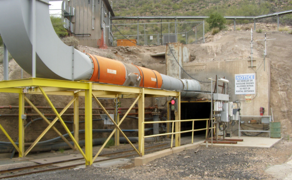 The high costs of developing and mining the replacement ores in the eastern area of the Magma mine resulted in the decision to expand the operation’s infrastructure in an effort to reduce production costs. This four-year expansion program began in 1969. It included an increase in the concentrator’s capacity from 1,500 to 3,300 tons per day in 1971, construction of the east plant site, the sinking of the 4,843-foot, Magma No. 9 shaft, and driving the 9,700-foot Never Sweat Tunnel on the 500-foot level from the west plant site to the No. 9 shaft. This project was completed in August 1973 at an estimated cost of $74.8 million.
