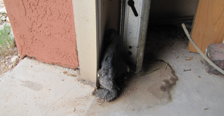 I was kind at first and caught the mice in live traps and transported them far away. But they kept coming. After capturing (and killing) nine mice in three weeks, I had to find a way to keep them from getting in. I determined that they were squeezing in between the garage door and the wall.