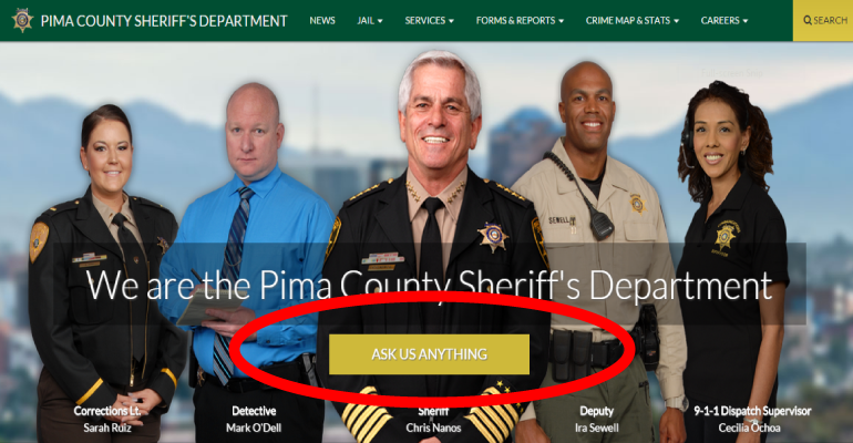 Pima County Sheriff's website invites public to "Ask Us Anything," but makes no promises about answers.