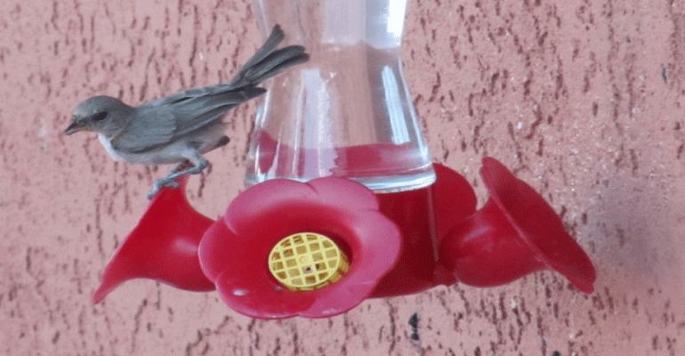 This past Spring, I set out a new hummingbird feeder that would be in the shade during the hot summer days. It was soon discovered by a female Anna’s hummingbird who had to defend it against several other hummers that found it later. (A Costa’s male is now in charge.) The feeder was also discovered by a gang of five little gray birds, the Gnatcatchers. There has been quite a competition between hummers and Gnatcatchers all summer.