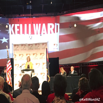 Former Arizona State Senator Dr. Kelli Ward, who is challenging McCain in the Republican Primary, received a standing ovation. Ward’s reception on Saturday was in stark contrast to the one McCain received last year when the majority of precinct committeemen booed, hissed and turned their backs on the senator at the Arizona GOP’s mandatory meeting last year.