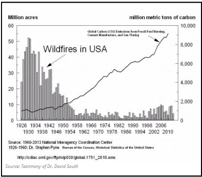 What’s most interesting is the years with the worst wildfires occurred when carbon dioxide emissions were only a quarter of what they are today. This is important because scientists claim CO2 and other greenhouse gases are heating up the planet and driving more wildfires.
