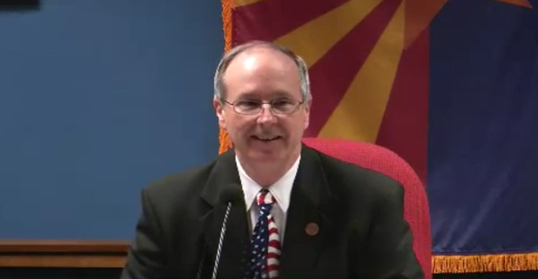 Rep. Bob Thorpe listens to attorney Ed Maldonado, past president of Los Abogados (AZ Hispanic Bar Association) offer compelling testimony before the Arizona House Government and Higher Education Committee