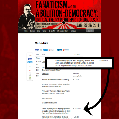 fanatacismIn the intervening time, the radical educator participated in spreading Critical Pedagogy. For example, in January 2013, Ramon Verdugo participated in the Olson Memorial Conference: Decolonization and Abolition in a Global Context, at Northern Arizona University in Flagstaff on the subject Critical Geography at NAU: Mapping Spaces and Advocating Action.