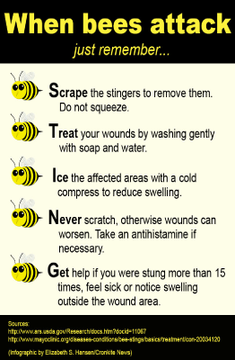 Being in good shape can save you if bees attack. Try to outrun the bees or get to shelter. Bees usually drop their pursuit after a quarter mile to a half mile, Smith said.