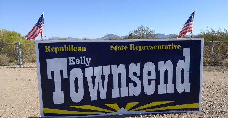 While the rest of the country was preparing for a celebration of the nation’s independence, Arizona State Representative Kelly Townsend on July 4th was documenting the destruction of her campaign signs, and more importantly the torched remnants of one of the American flags adorning those signs. Townsend found the destruction at the corner of Guadalupe and Arizona State Route 202 in Mesa.