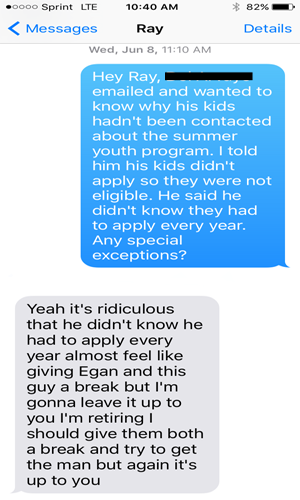 Carroll conducting business through text. Debating whether or not Pima County kids will have opportunity or not. [Redaction by ADI]