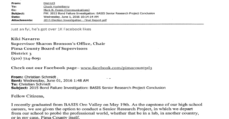 The bonds’ failure was so devastating, that according to emails, Bronson’s staff tracked the “likes” earned on Facebook by an 18 year old Basis High School student’s senior project which examined the reasons for the bonds’ failure.