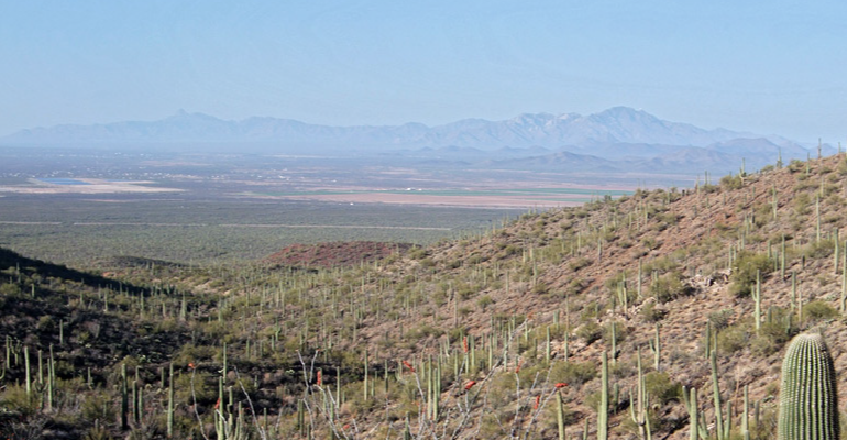 Avra Valley looking west from the Gould Mine in the Tucson Mountains toward Kitt Peak in the distance.
