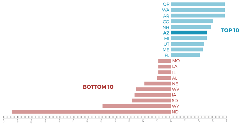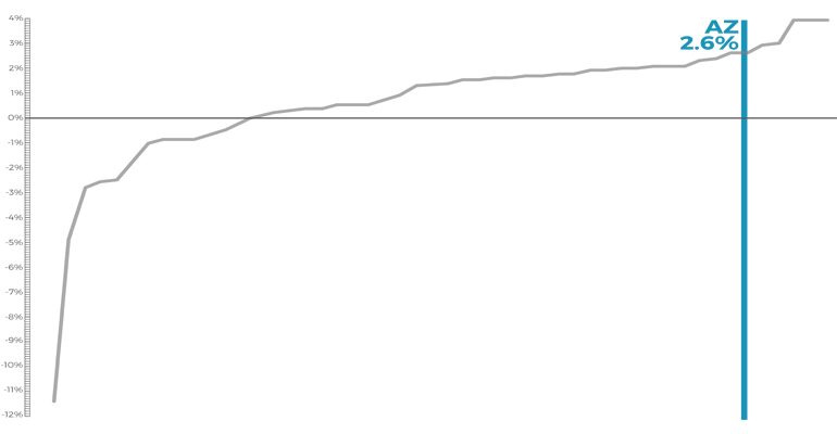 The Bureau of Economic Analysis recently released gross domestic product numbers for the first quarter of 2016. Arizona’s growth came in at a blistering 2.6 percent, tying for the 6th-fastest growth rate for any state in the nation, compared to the previous period.