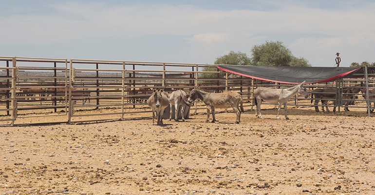 Burros in BLM holding pens in Florence. (Photo by Isabel Menzel/Cronkite News)