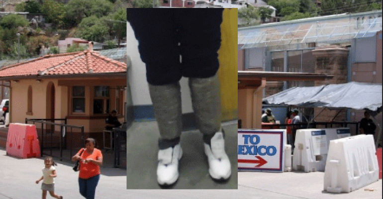 A female subject was caught with more than three pounds of meth wrapped around her calves