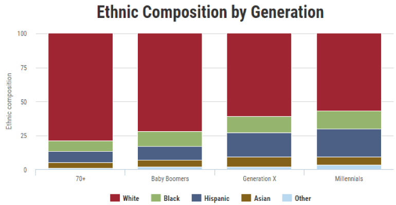 Millennials are more diverse than any generation before them. According to 2014 census data, 44 percent of them identify as nonwhite.