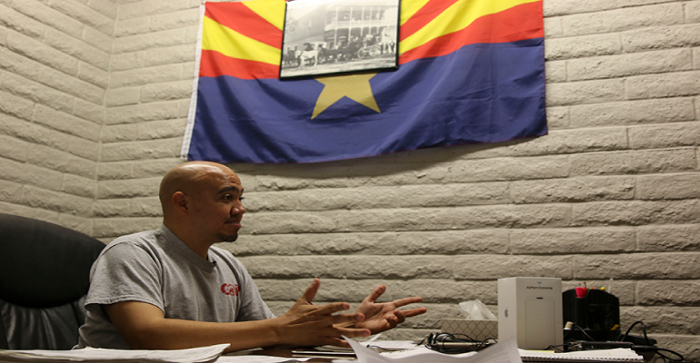 Sergio Arellano discusses Republican strategy for recruiting Latino voters at the Arizona GOP headquarters in Phoenix on Aug. 29, 2016. (Photo by Danielle Quijada/Cronkite News)