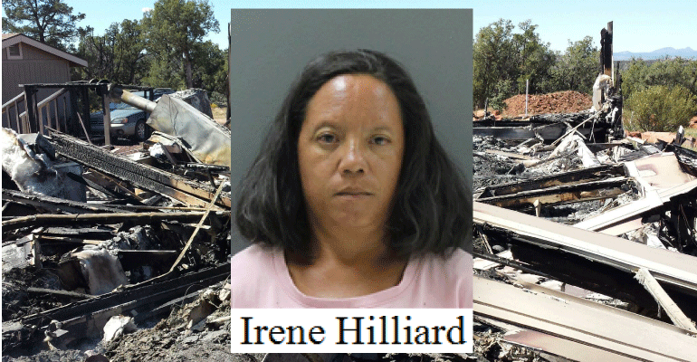 On September 10, 2016, detectives from the YCSO Criminal Investigations Bureau were called to investigate a suspicious fire in a remote section of Juniper Woods near Ash Fork, Arizona. Deputies, who were already on scene after the 6:30 PM 9-1-1 call, had identified witnesses. Those witnesses provided statements to detectives regarding the suspicious actions involving 44-year-old Irene Hillard.