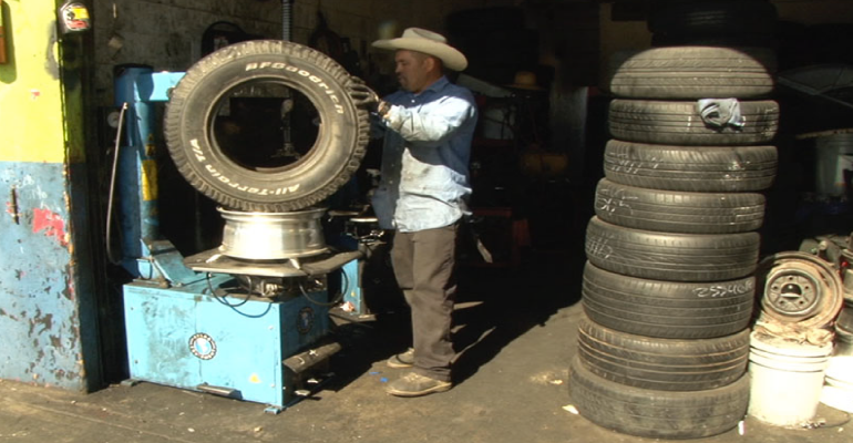 PHOENIX — It’s noisy, cramped, and tires are piled high up to the ceiling in the waiting room at Mil Amores, but none of that matters to customers who’ve come to the shop looking to save money and their tires.
