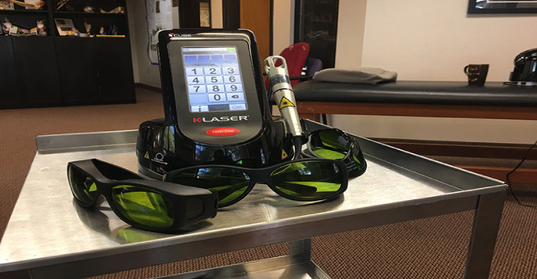 The K-Laser used at Alpha Chiropractic & Physical Therapy is moved over the skin around the affected area. Protective glasses are used to prevent the laser from acidentally shining in someone’s eye. (Photo by Michael Boylan/Cronkite News)